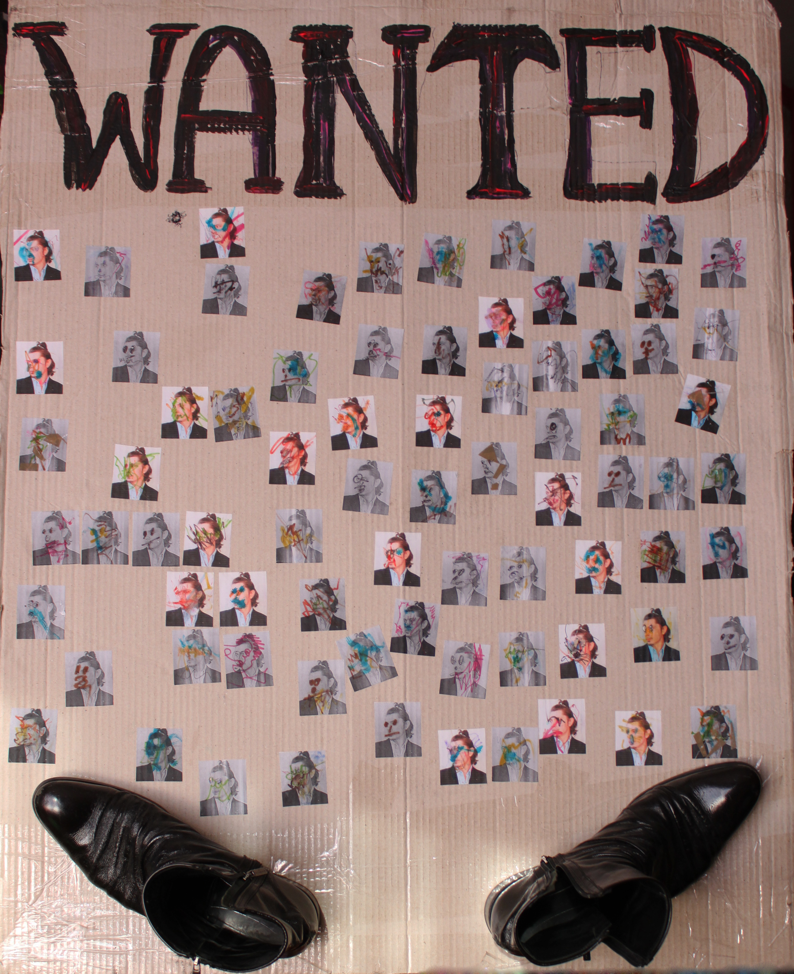mixed media: acrylic, ink, photo, zippers, markers on cardboard