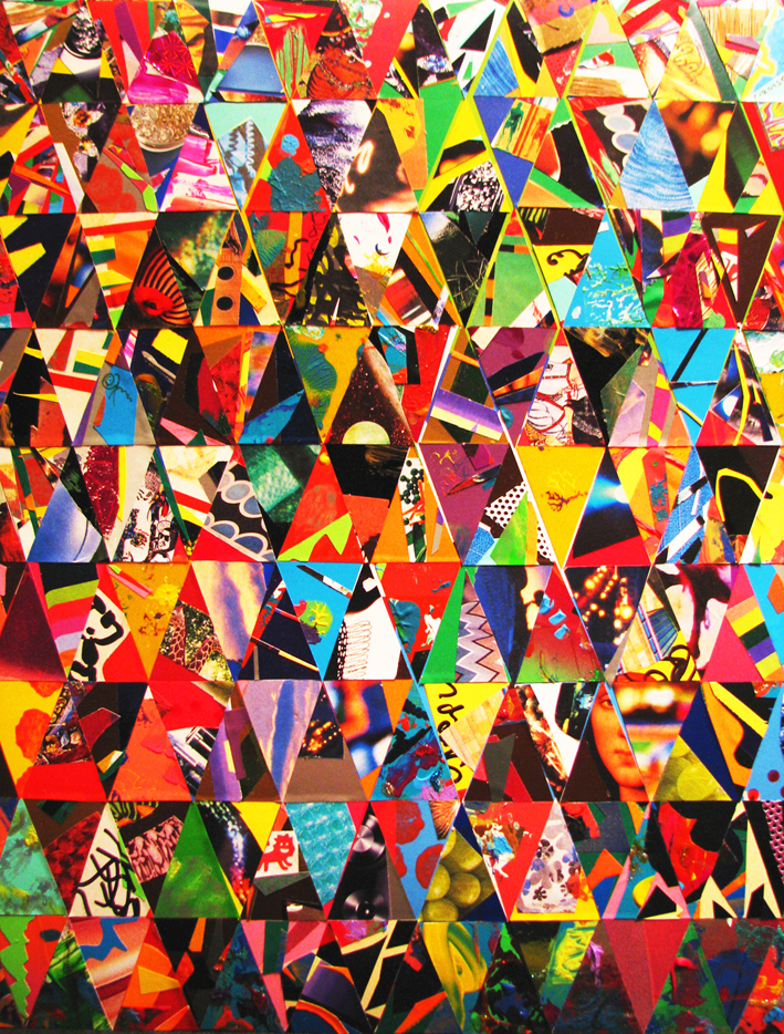mixed media: acrylic, oracal, markers, shiny gel, fluor spray, paper collage, etc