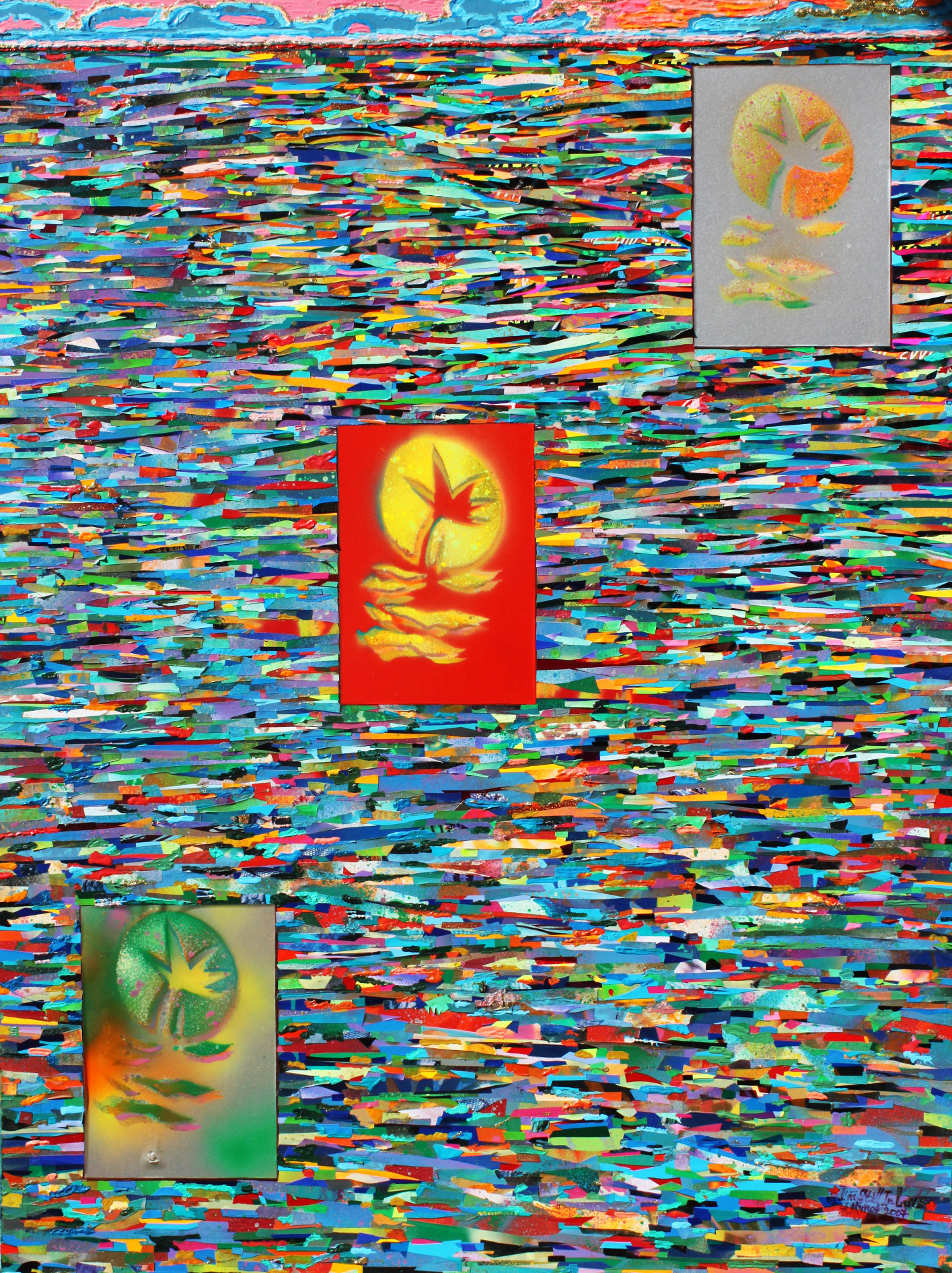 mixed media: acrylic, fluor spray, oracal, shiny gel