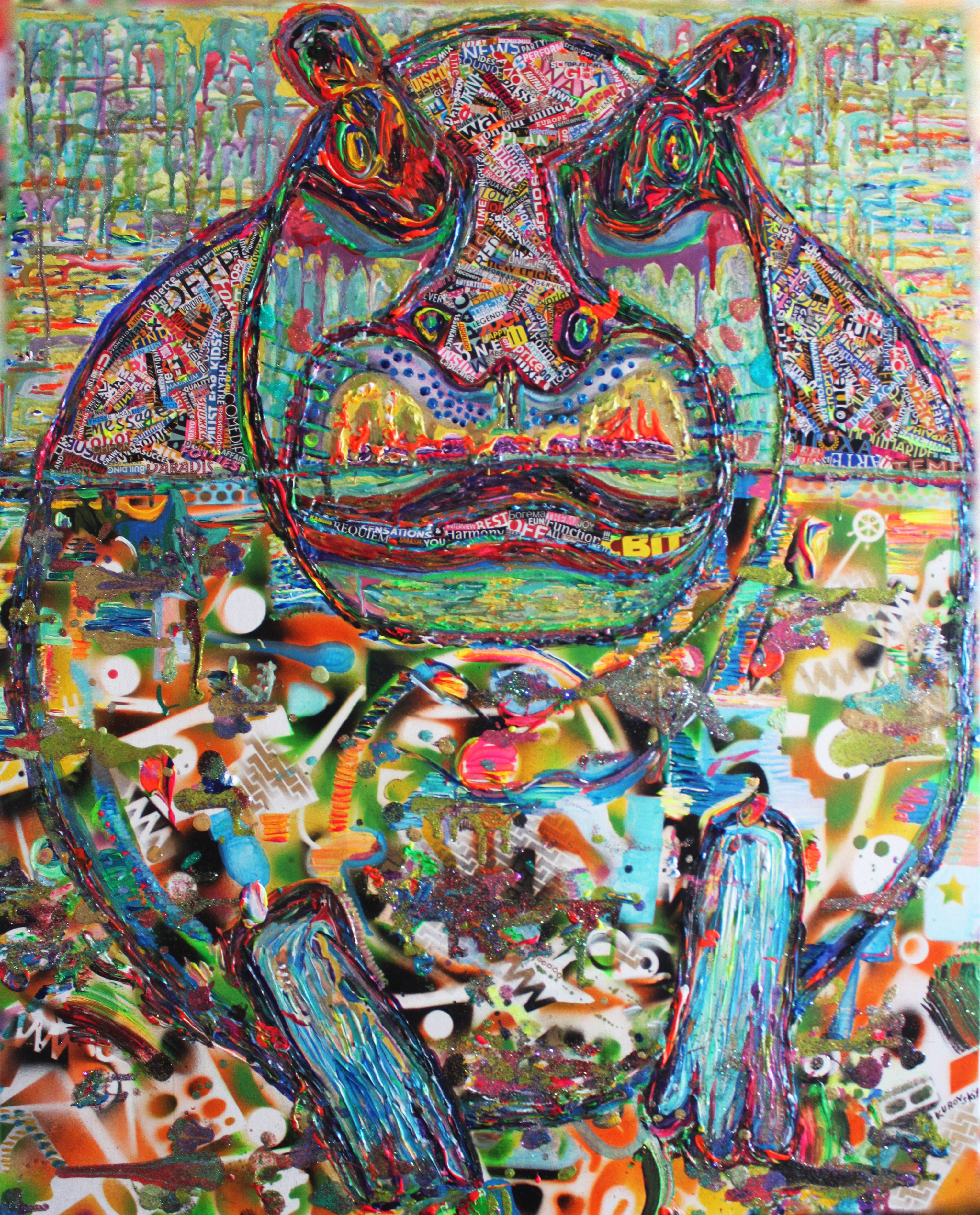 mixed media: acrylic, spray, gel on canvas