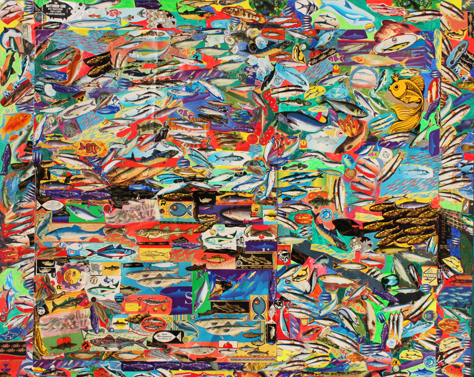 mixed media: paper collage, acrylic