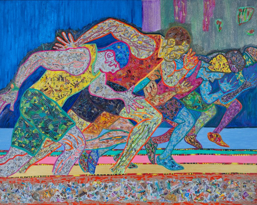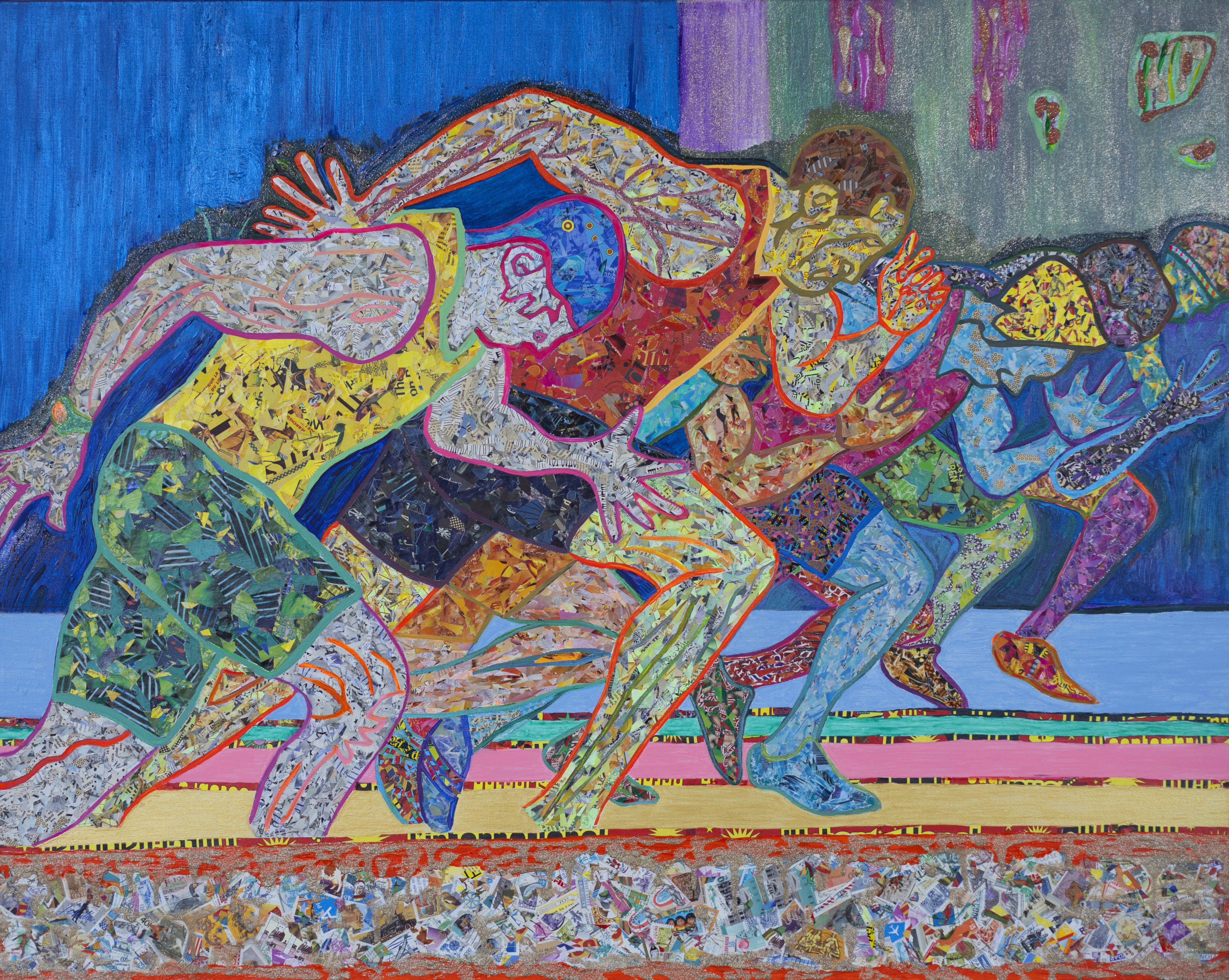 “Heart to Heart. Star to Star” (80×100 cm) 2019 mixed media: acrylic, paper collage on canvas