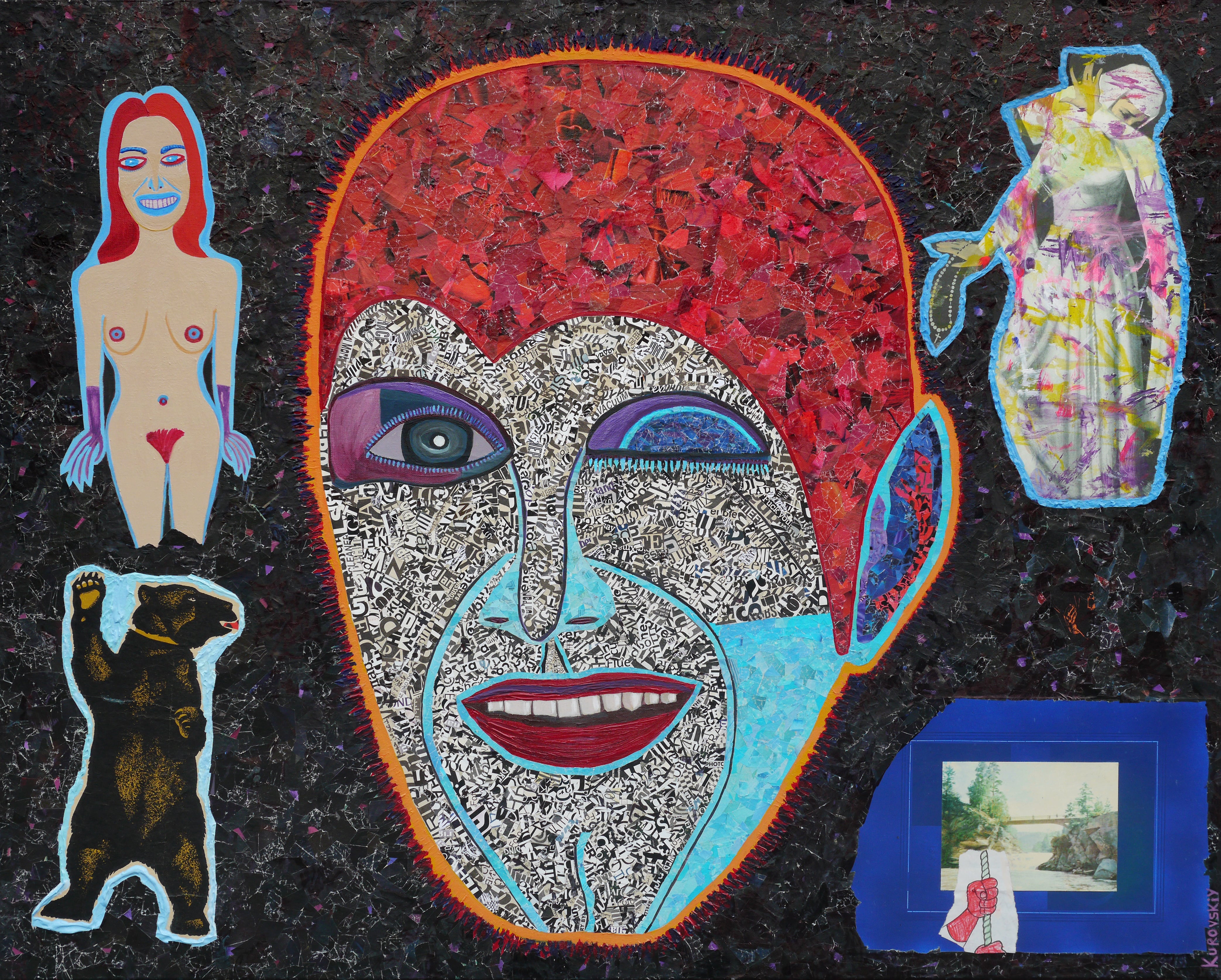 mixed media: acrylic, paper collage on canvas