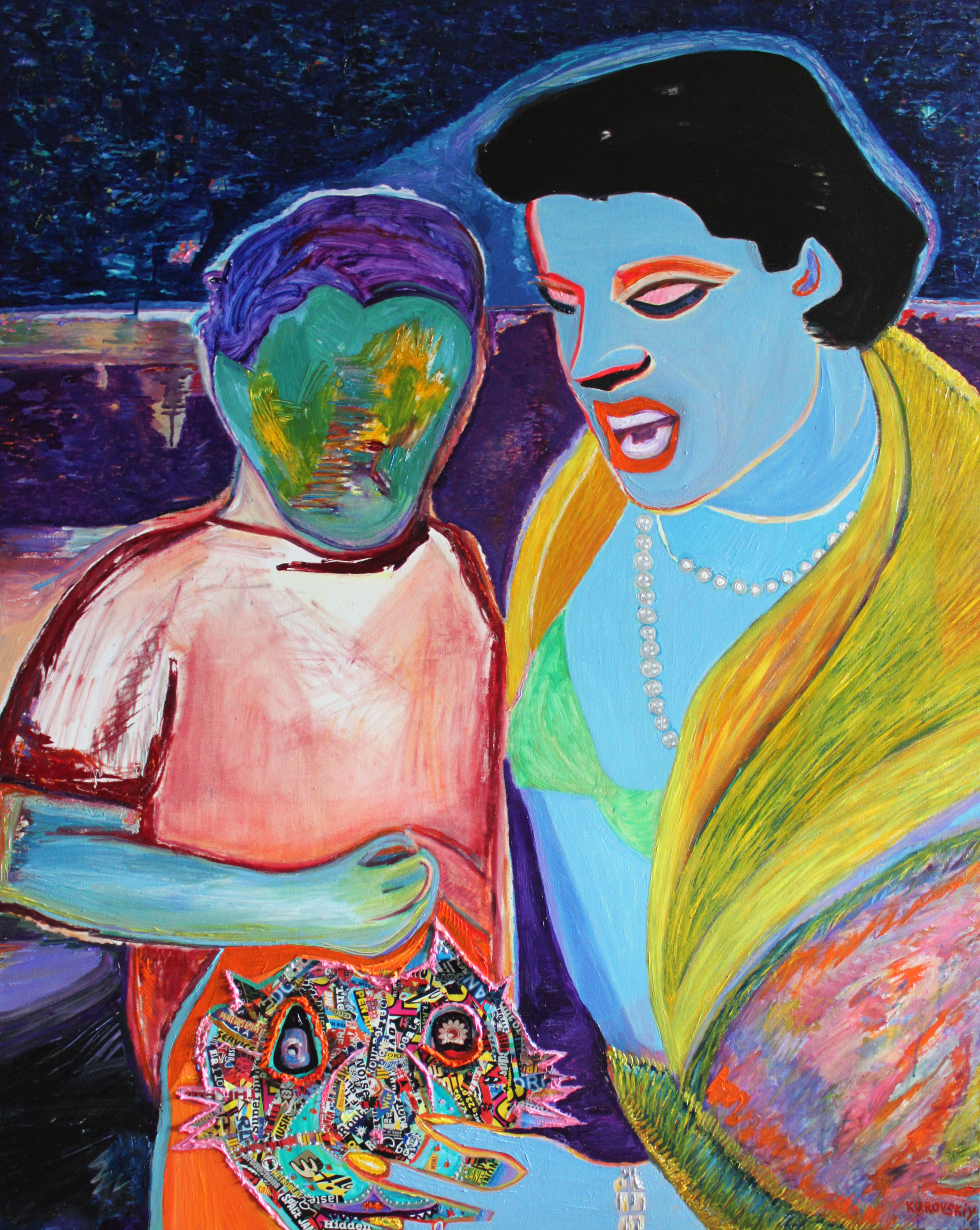 oil, paper collage on canvas